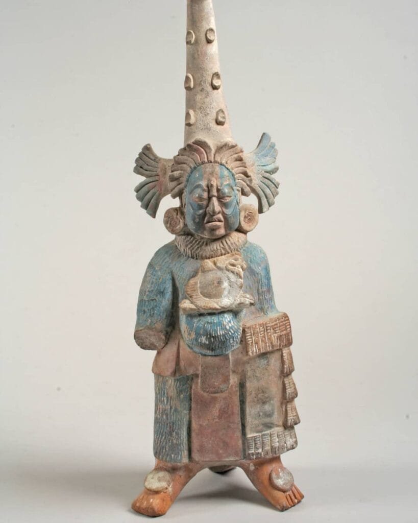 Esta es una representación funeraria del período Clásico. Podemos observar a una mujer acompañada de sus hijos gemelos, fue encontrada en Huehuetenango.Fue una mujer pequeña con caderas angostas, posiblemente era muy joven y por este motivo pudo haber fallecido al dar a luz a los gemelos. Según Matos Moctezuma las mujeres que morían durante el […]