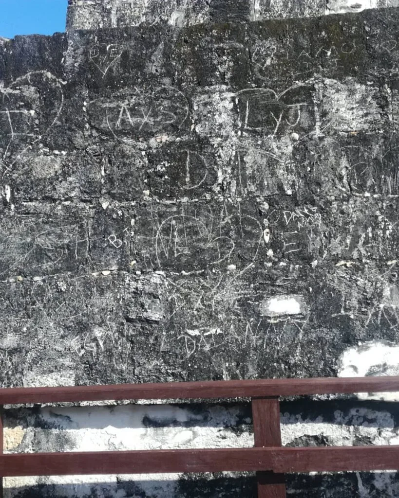 En las primeras fotografías podemos observar que se podía subir en la escalinata central, sin embargo hace unos años construyeron una plataforma y gradas de madera para que los visitantes pudieran subir, gracias a esto, lastimosamente algunos visitantes se han dedicado a alterar la estructura, esto lo podemos observar en la última fotografía.