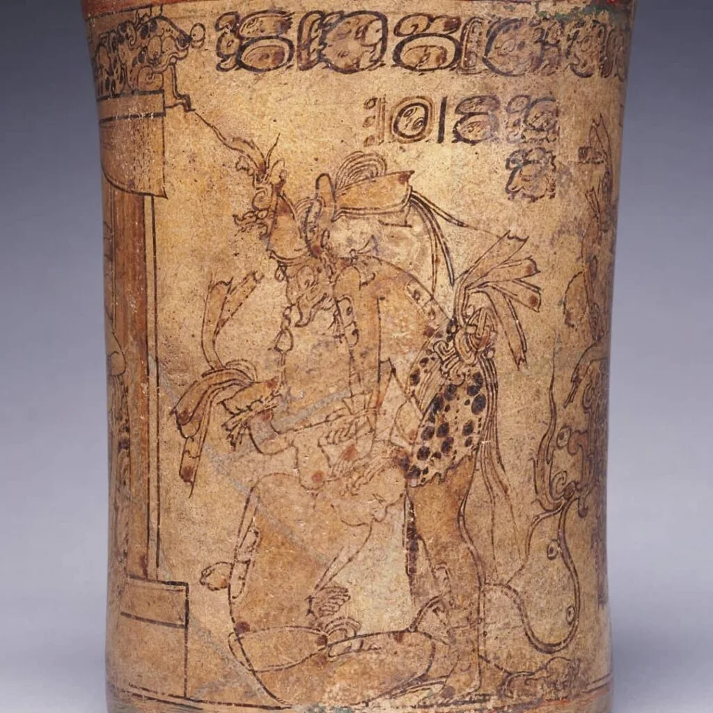 As is common in the mythological narratives in the entire american continent, the heroes win the day not through feats of brute force, but through cunning and, often, humor, and tricks. The hero twins Junajpú and Xbalanque are the heroes crafty for excellence and this glass, probably, was made in his honor. Life, triumphs over God L and death, cunning, and humor.