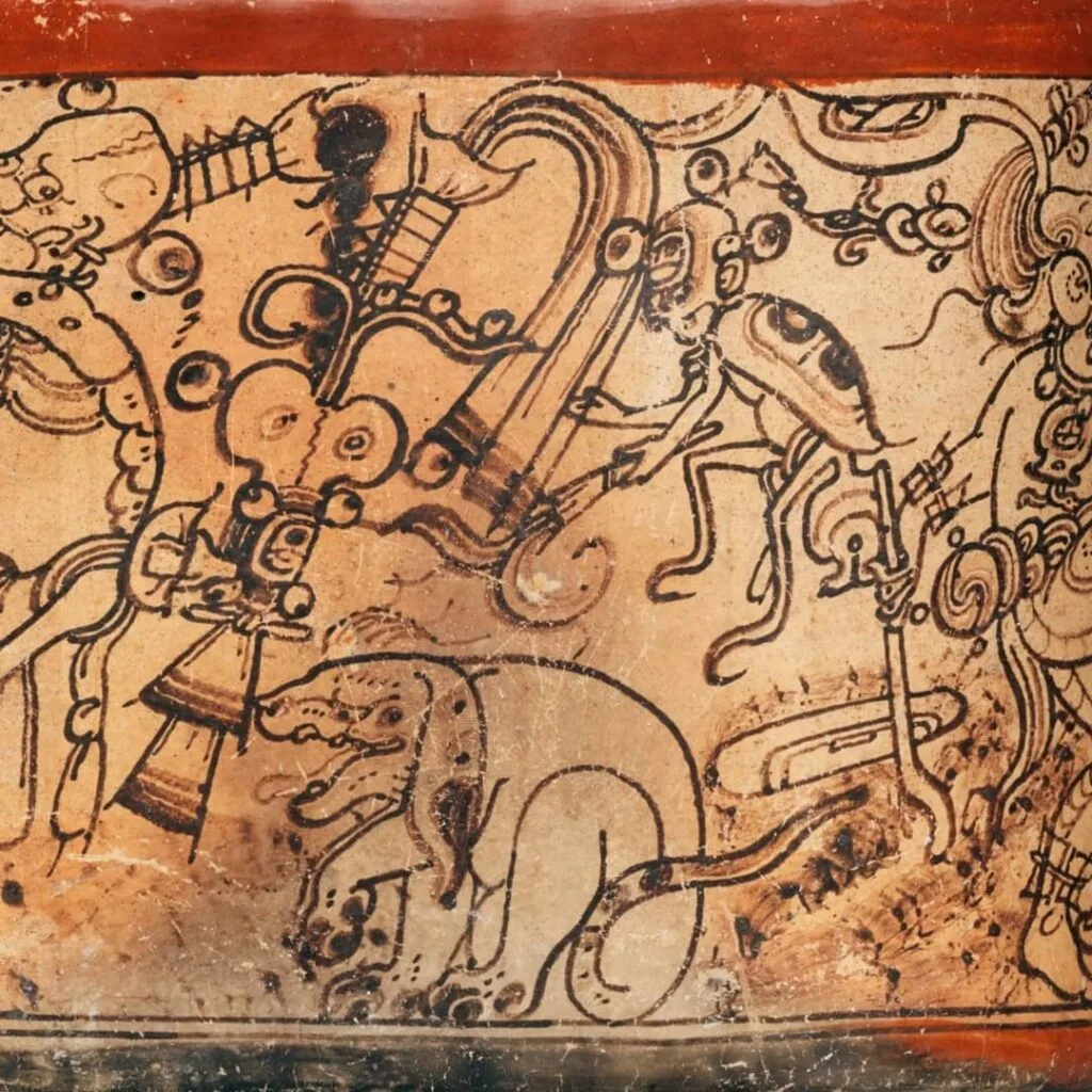 En este hermoso vaso podemos ver en todo su esplendor como la filosofía y la narrativa maya se expresan a través del arte.