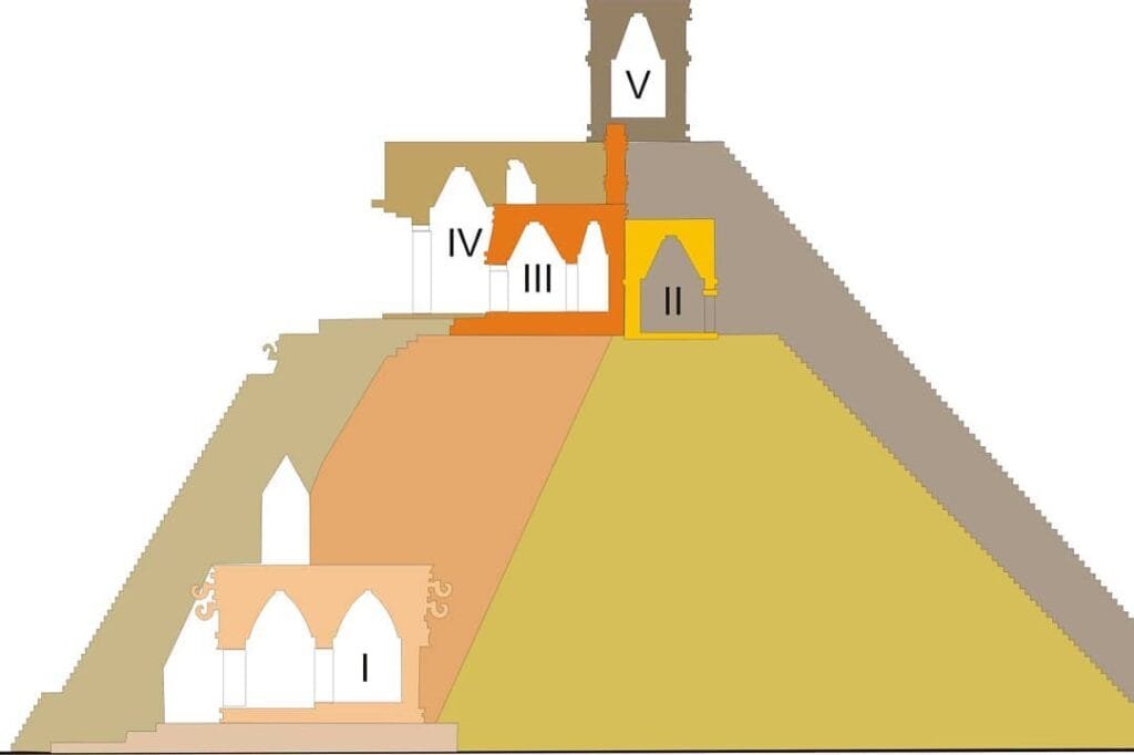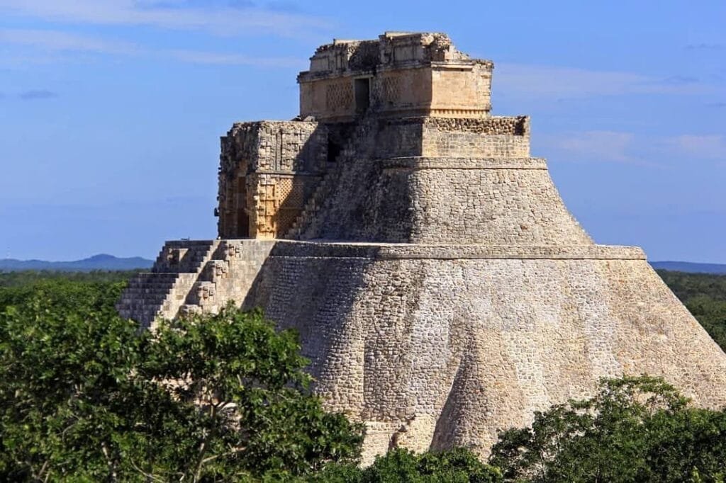 La pirámide del adivino es una de las pirámides mas bellas, vistosas y misteriosas del área maya. Alcanza los 35 metros, es la única con base ovalada y los escalones de son inusualmente estrechos y empinados, superando casi siempre los 45 grados (se cree esto se dispuso con la intención de que quienes subiesen al templo no pudieran levantar la cabeza durante el ascenso ni el descenso)