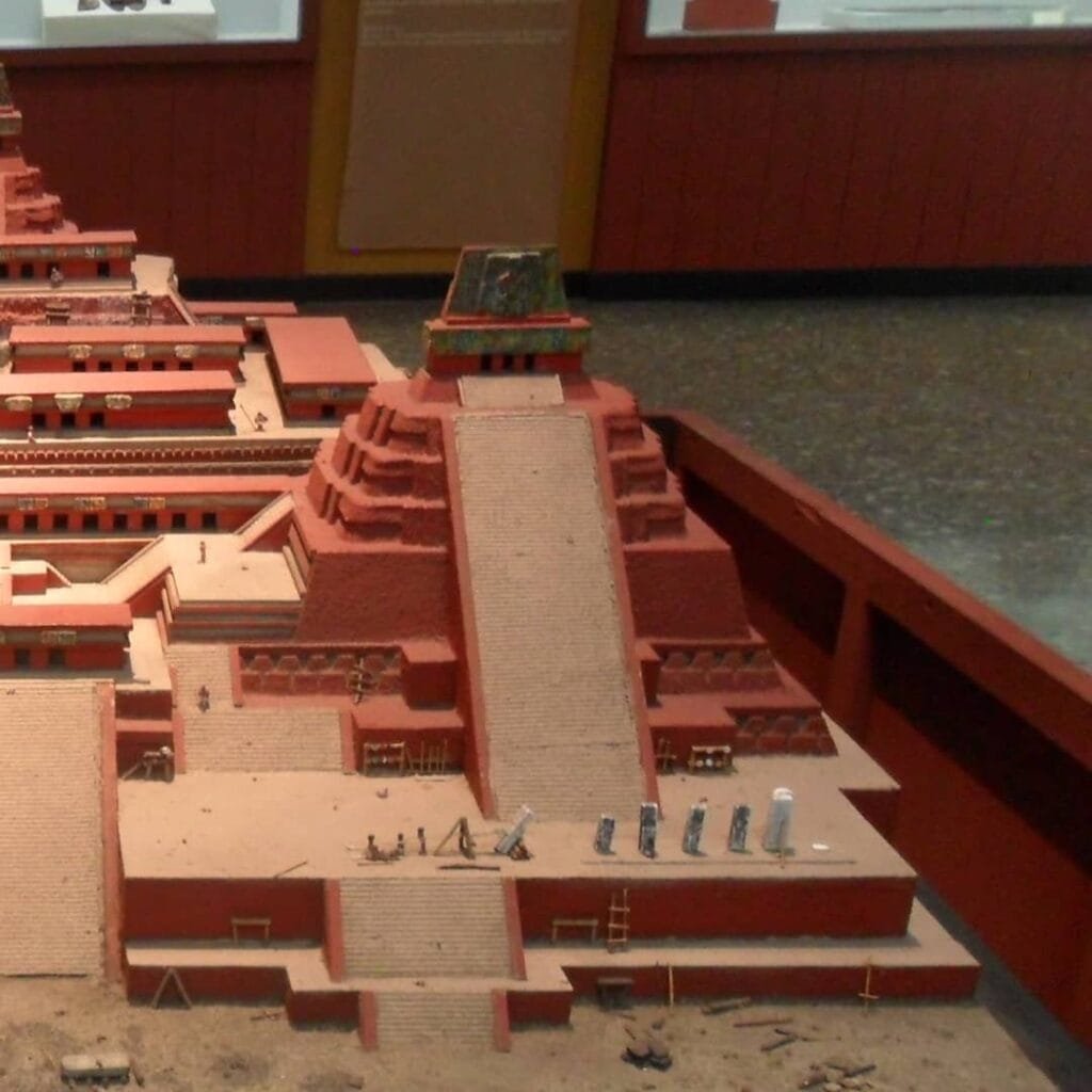 Esta es una maqueta a escala de como se habría visto la Acrópolis de la ciudad de Piedras Negras, durante el período clásico. La maqueta está dentro del Museo Nacional de Arqueología y Etnología de Guatemala.