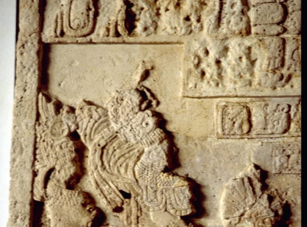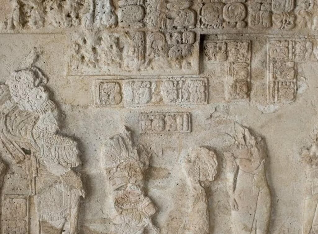 Este monumento elaborado en piedra caliza estuvo en una de las paredes de un antiguo edificio de la ciudad de Dos Pilas.